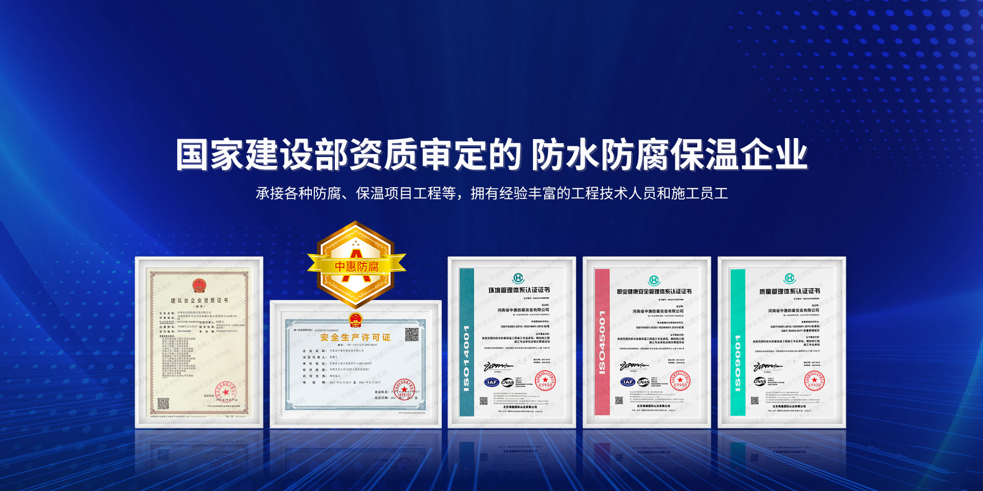 公司經(jīng)營范圍:防水防腐保溫工程;消防設(shè)施工程;建筑裝修裝飾工程;建筑機電安裝工程;電力工程;建筑工程;石油化工工程;工業(yè)清洗工程;油罐清洗工程;鋼結(jié)構(gòu)工程;環(huán)保工程;模板腳手架工程;電纜防火封堵、防污閃噴涂、外墻外保溫工程;各類施工勞務(wù)作業(yè);設(shè)備維修、船舶鉚焊、涂裝;電力工程材料、建材、防水材料、防火材料、防腐保溫材料銷售,并相繼通過了GB/T19001-2008idtISO9001:2008GB/T50430-2007質(zhì)量管理體系認(rèn)證證書。GB/T24001-2004idtISO14001:2004環(huán)境管理體系認(rèn)證證書。GB/T28001-2011idtOHSAS18001:2007職業(yè)健康安全管理體系認(rèn)證證書。公司是中國防腐蝕于防護協(xié)會、中國施工企業(yè)管理協(xié)會、電力協(xié)會和中國鋼結(jié)構(gòu)防水協(xié)會會員單位。 公司的經(jīng)營業(yè)務(wù)涵蓋了石油、化工、電力、冶金、煤炭、船舶、國防、燃?xì)狻⑺h(huán)保、交通運輸、航空及國防軍工和輕紡市政等行業(yè)的防腐保溫絕熱設(shè)備。鋼結(jié)構(gòu)安裝、防火、防水、金屬噴鍍、聚脲噴繪、陰極保護、防滲透堵漏、玻璃鋼及各種磚版材料襯里、橡膠襯里、煙氣硫和耐酸溶劑腐蝕等工程施工。公司連續(xù)十年榮獲“省市先進施工企業(yè)”“安全生產(chǎn)先進單位”“重合同,守信用企業(yè)”和“AA***資質(zhì)企業(yè)”的稱號。2000年被命名為市級文明單位,2002年被國家工商行政管理局命名為“重合同,守信用的企業(yè)”、被中國工業(yè)防腐蝕技術(shù)協(xié)會命名為“防腐蝕企業(yè),能源節(jié)約及環(huán)境保護領(lǐng)域有豐富的經(jīng)驗和***的業(yè)績。工程一次交驗合格率100%。其中攀枝花鋼鐵公司煉鐵廠四號高爐及熱風(fēng)爐防腐工程、上海寶鋼公司煤氣柜防腐工程、撫順石油一廠裝置防腐項目、齊魯石化公司稀烴廠高塔防腐工程、吉林化學(xué)工業(yè)公司煉油廠油罐防腐工程、天津石化熱電廠六號爐頂棚聯(lián)絡(luò)管保溫工程、大慶油田(太倉)力神泵業(yè)工程、中國化學(xué)工程第十一建設(shè)工程、中原油田勘探局工程、中國石化銷售有限公司華北分部、魯皖輸油管道工程、貴州開磷息烽合成氨工程、陜西黃陵煤化工程、中國石油天然氣西部管道塔里木輸油工程、邯鋼集團邯寶鋼鐵公司煉鐵工程、德州供電工程、吉寶(南通)船廠工程,偃師華潤熱力工程、鄭州熱力總公司。 河南省中惠防腐安裝有限公司愿以豐富的施工經(jīng)驗,***的技術(shù),***的設(shè)備,***的管理,***的服務(wù),竭誠為國內(nèi)外廣大的用戶提供***滿意、******的工程作品。 我公司愿與國內(nèi)外同仁一道,團結(jié)協(xié)作,共同推進防腐蝕行業(yè)發(fā)展! 公司地址:河南省長垣縣建設(shè)路北段360號 固定電話:0373-8866488 郵編:453400 網(wǎng)址:http://www_zhff_com_cn.qigsc.com